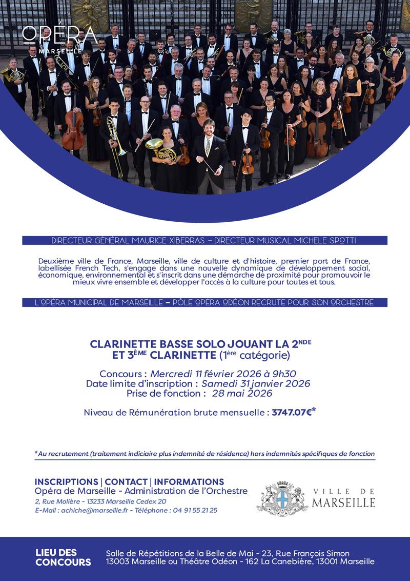 Clarinette Basse Solo jouant la 2ème et 3ème Clarinette (1ère catégorie) (h/f)